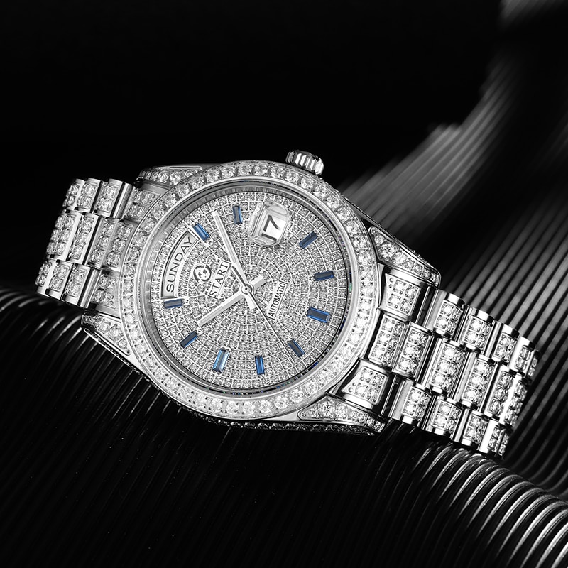 Diamond-studded men's watch automatic mechanical watch official authentic Gypsophila men's watch golden watch reliable quality