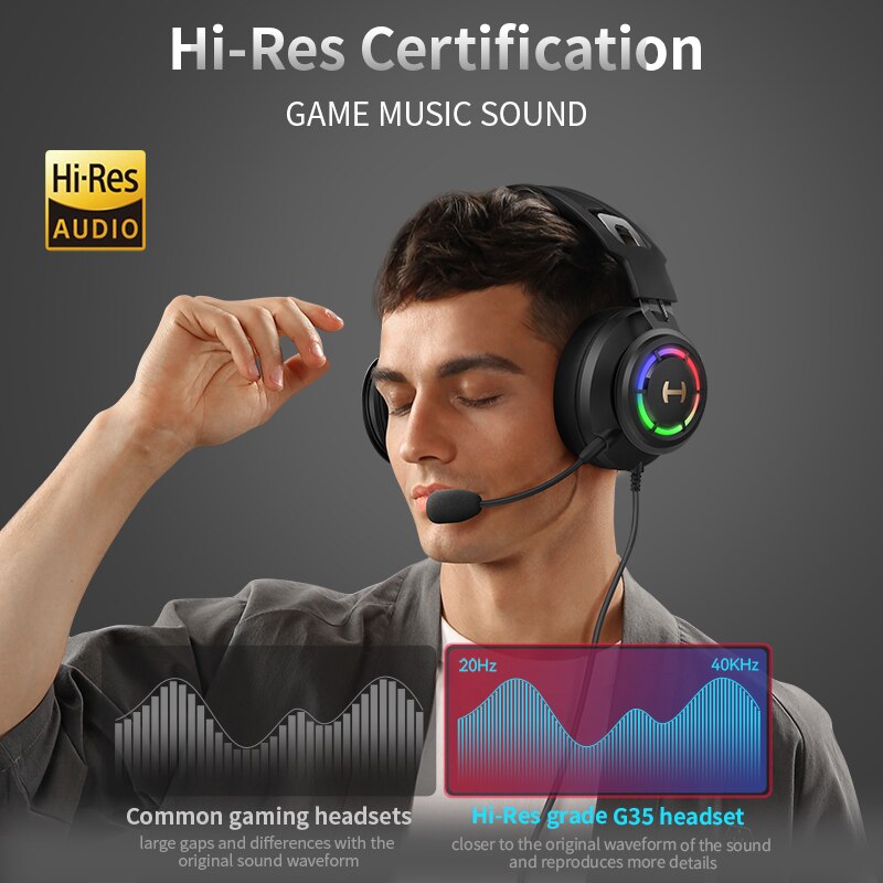 EDIFIER HECATE G35 Gaming Headset Hi-Res 7.1 Surround USB Gamer Headphone 50mm Driver/Detachable Mic/Inline Control/RGB Lights