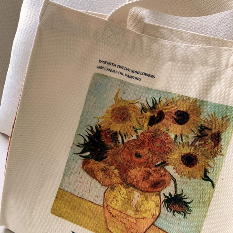 Poetry Lifest Van Gogh sunflower Classic Thick Cotton Canvas Bag Popular Style Zipper Single Shoulder Shopping Tote bag