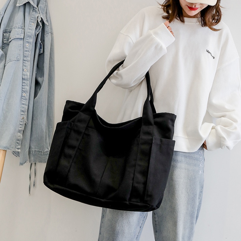 Women's Tote Bag Large Capacity Handbags For Women 2022 Trend Canvas Casual Shopper Solid Travel Shoulder School Shopping Bags