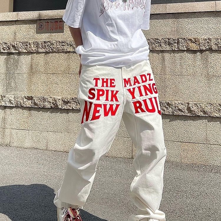 American Niche White Red Letter Printed Casual Pants Retro Trend Hip-hop Street Tooling Trousers Men's and Women's Fashion