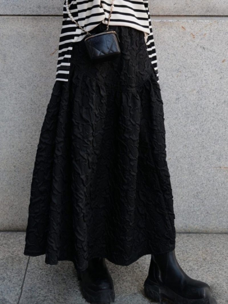Retro Loose A-line Mid-length Full Skirts Vintage High Wasit Slim Crumple 3D Print Solid Jupe Femme Japanese Spring Draped Falda