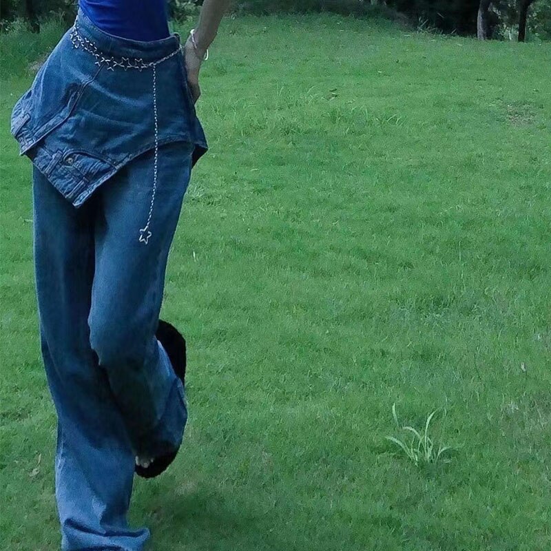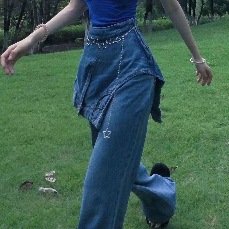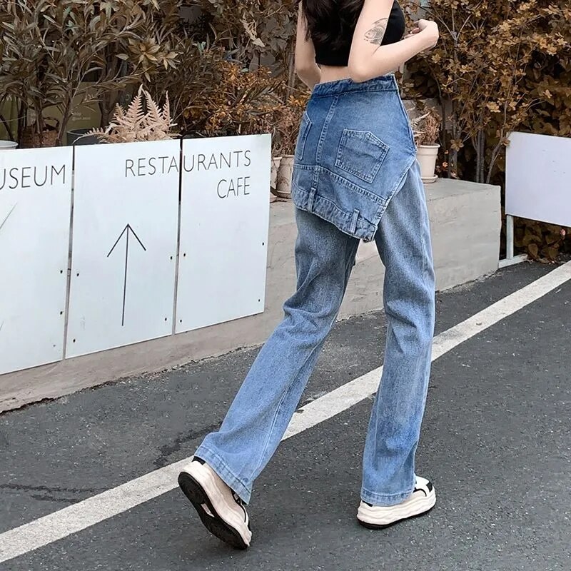 Faux Two Piece Flared Jeans Women's Y2k Winter 2023 Design Niche High Waist Slim Wide Leg Pants Trendydickies Pants청바지джинсы