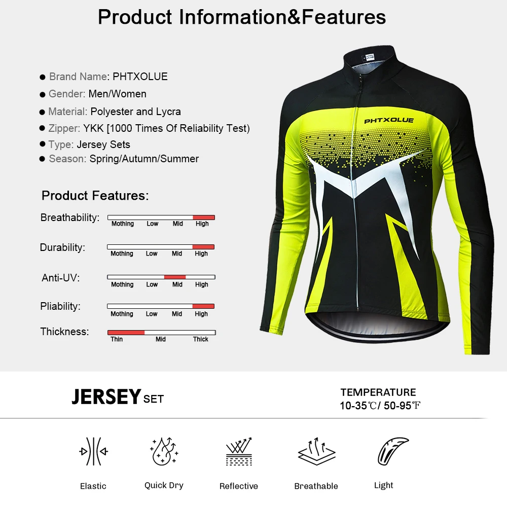 Phtxolue Breathable Long Sleeve Cycling Set Mountain Bike Clothing Autumn Bicycle Jerseys Clothes Maillot Ropa Ciclismo