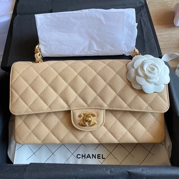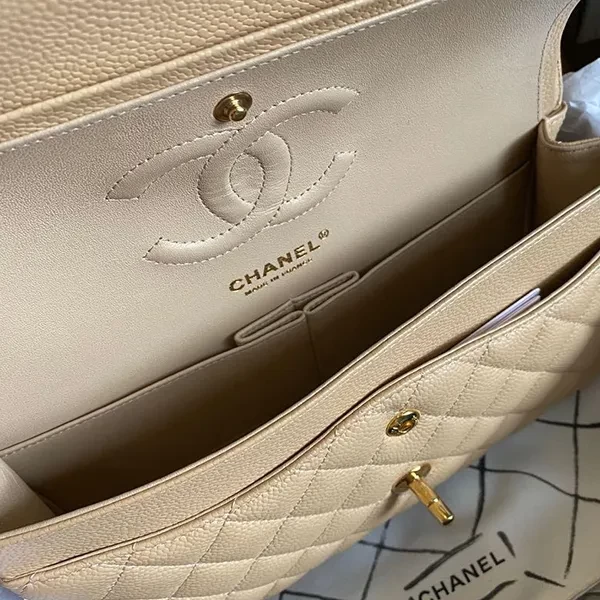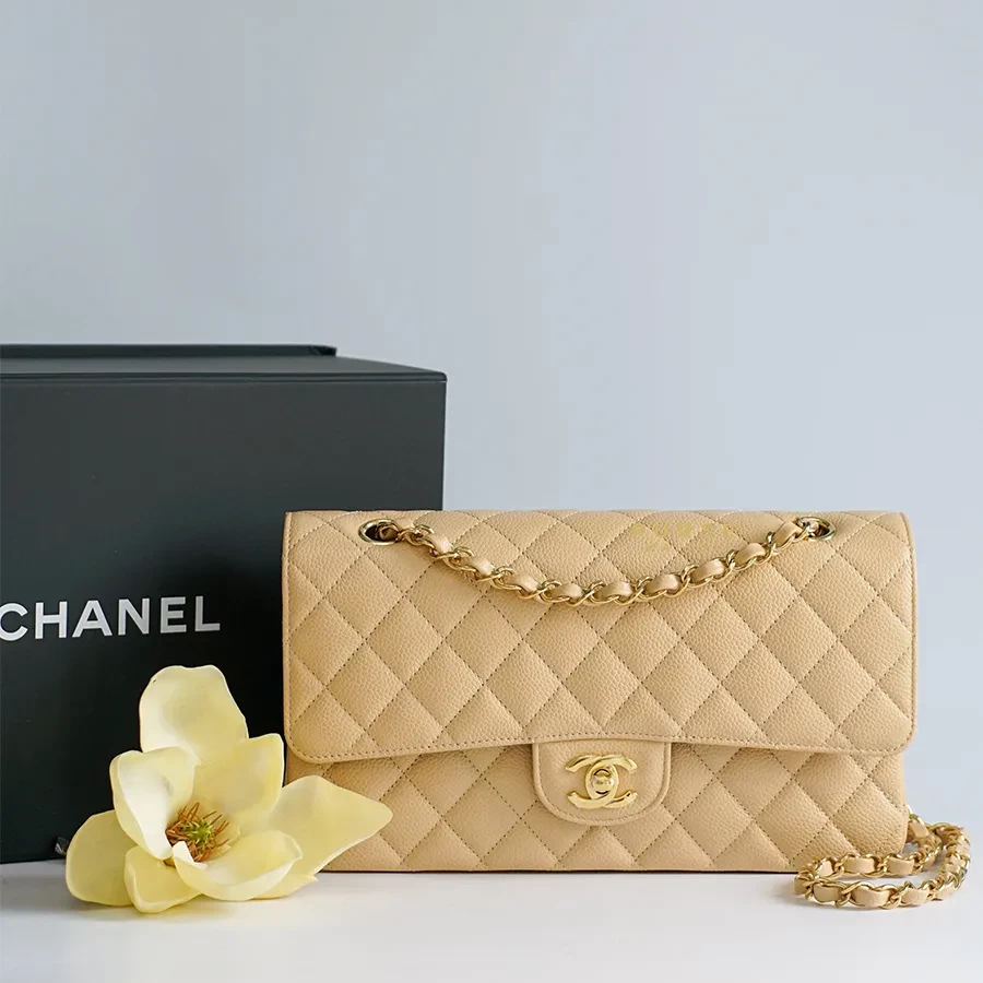 Túi Đeo Chéo Nữ Chanel Beige Clair Caviar Medium Classic Ghw Màu Be